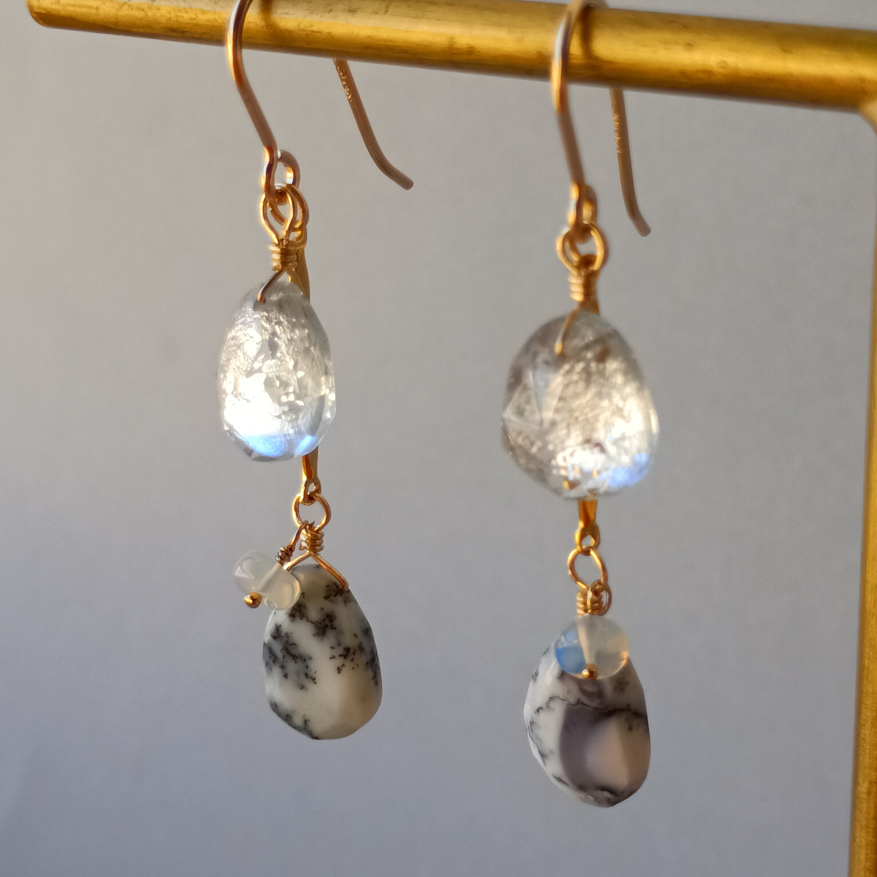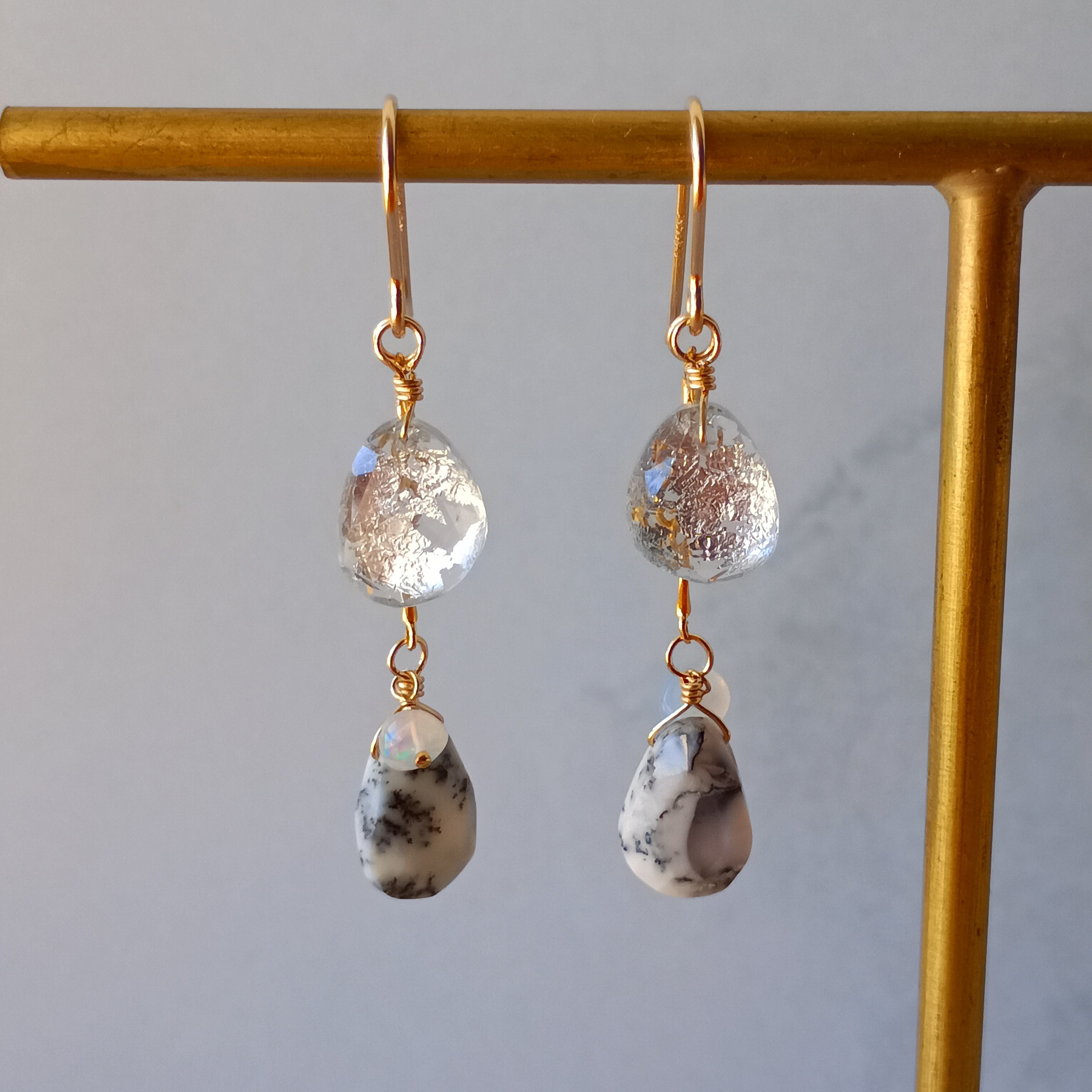 ユニークでシックなデンドライトオパールと、遊色煌めく小粒オパールを合わせて、アンティークな雰囲気にお仕立てしました。