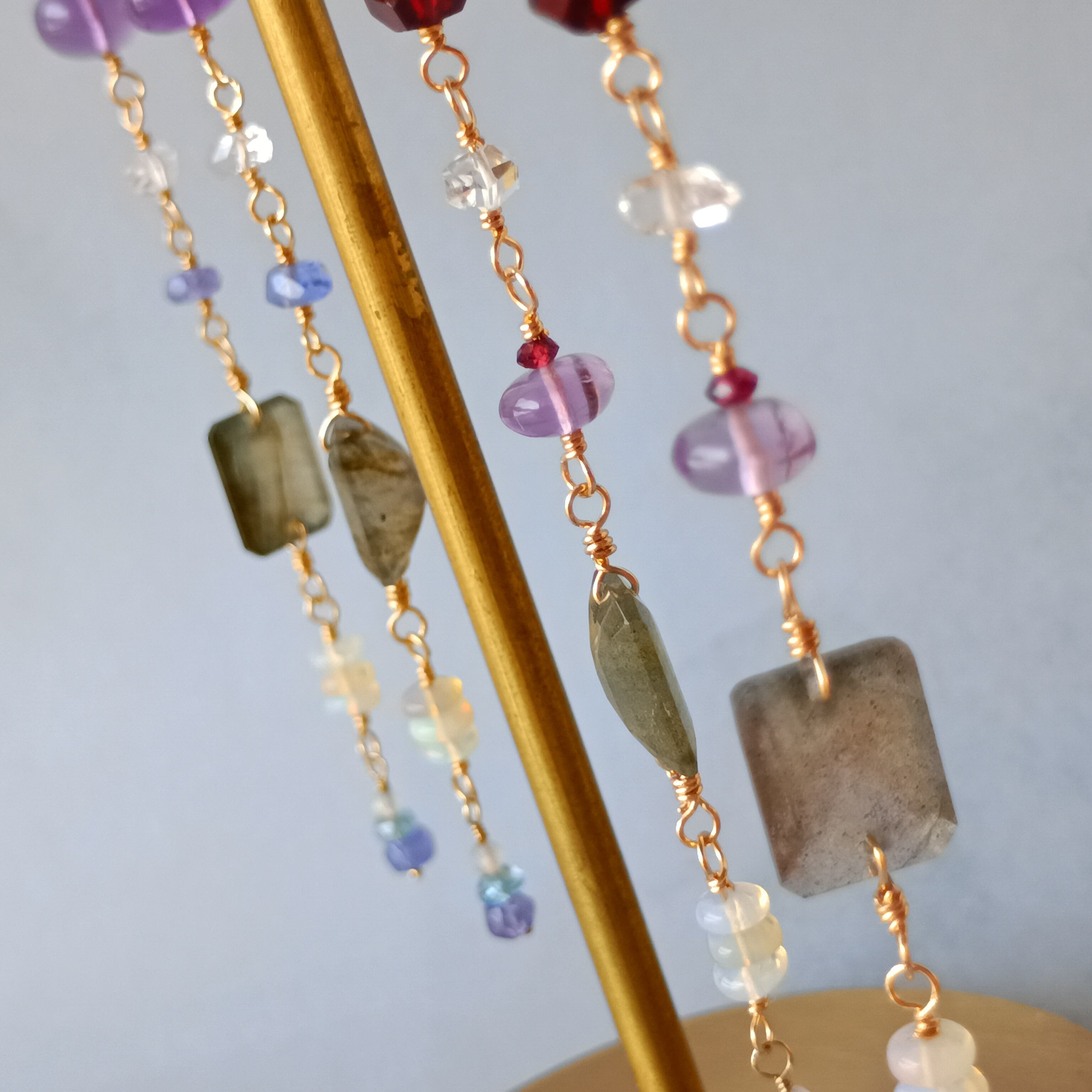 ● ナチュラルカラージルコン、グレームーンストーン、ロードライトガーネット、ハーキマーダイヤモンド、モザンビーク産ガーネット、アメシスト、ラブラドライト、オパール、ホワイトカルセドニー