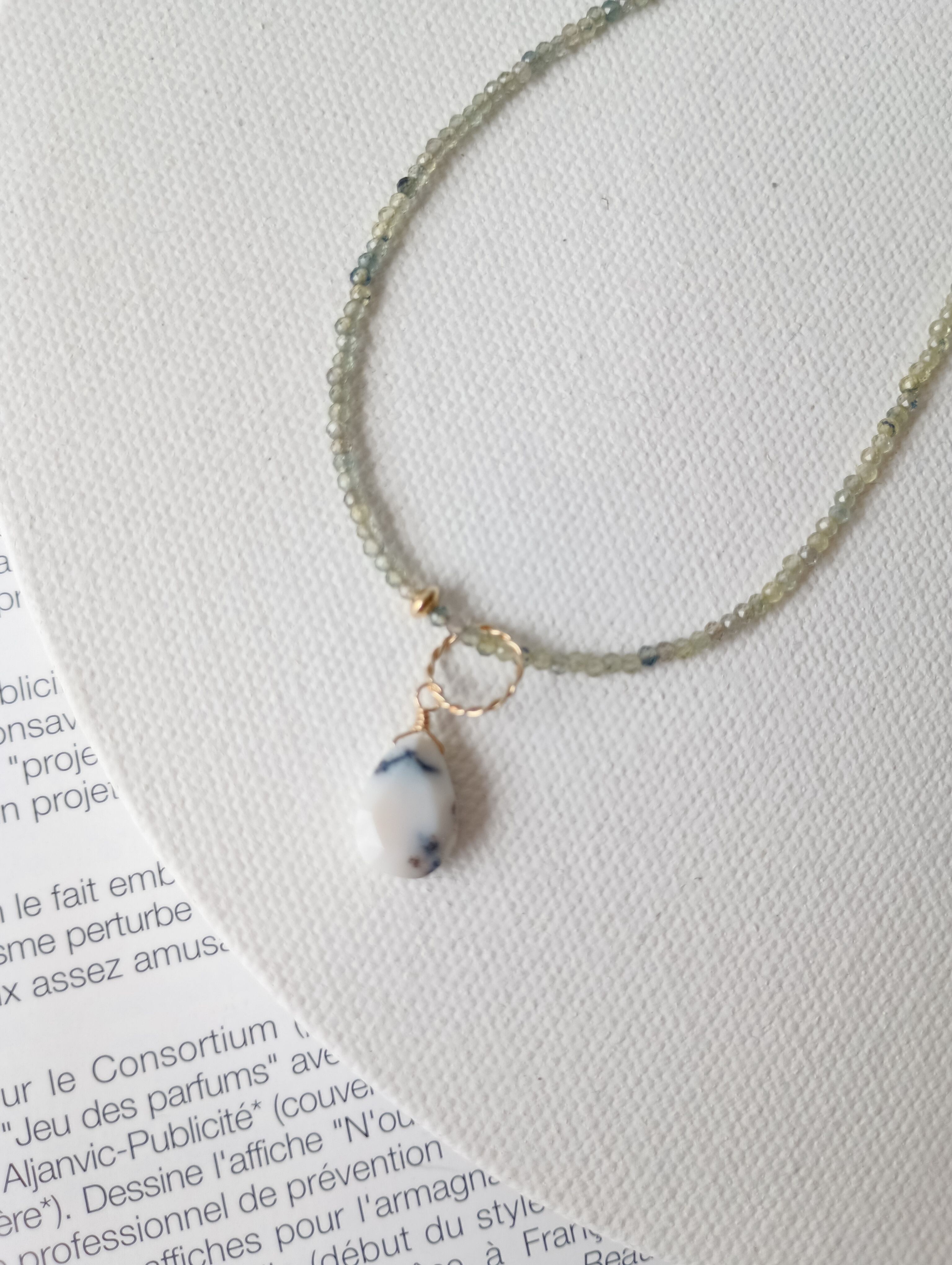 極小グリーンサファイアをたっぷり使用したチョーカーネックレスです。